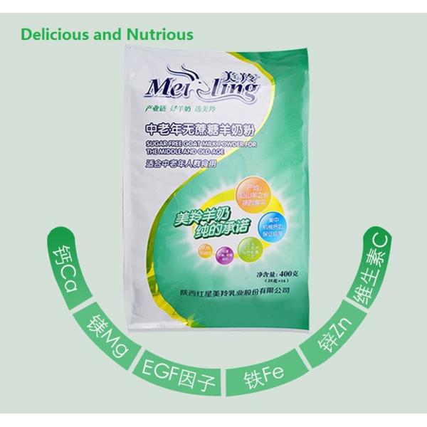 The product is made of natural fresh goat milk, it is a formula powder for middle and old age. according to the needs of middle-aged and elderly people nutrition, Additionally minerals ( Ca, Fe and Zn) ,folic acid and Vitamin are added ,Rich in dietary fiber, Protein-Rich.Vitamin D this powder to provide the necessary calcium supplement for elderly. It is the first milk choice for the elderly.